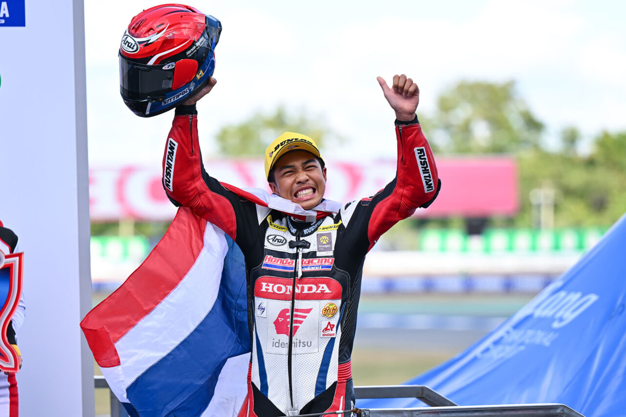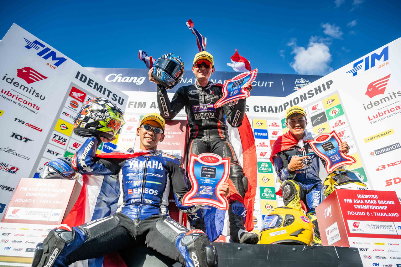 ศึกสองล้อรายการใหญ่ที่สุดของเอเชียดวลกันสุดมันส์ นักบิดไทยพาเหรดสร้างผลงานสุดกระหึ่มในโฮมเรซ โดย “แสตมป์” อภิวัฒน์ วงศ์ธนานนท์ แชมป์เอเชีย 2 สมัยจาก ยามาฮ่า ทีเอ็นพี เข้าวิน ซูเปอร์สปอร์ต 600 ซีซี ขณะ “ตี” อนุภาพ ซามูล จาก ยามาฮ่า ไทยแลนด์ เรซซิ่ง ทีม รั้งอันดับ 2 จี้จ่าฝูงเหลือ 3 แต้ม ด้าน “ชิพ” นครินทร์ อธิรัฐภูวภัทร์ จาก ฮอนด้า เรซซิ่ง ไทยแลนด์ จบอันดับ 4 รุ่นใหญ่ยังมีลุ้นแชมป์เอเชีย ด้านเอเชีย โปรดักชั่น 250 ซีซี “ไอเดีย” กฤตภัทร เขื่อนคำ จาก ยามาฮ่า ไทยแลนด์ เรซซิ่ง ทีม ผงาดโพเดียมอันดับ 2 ส่วน “อุ้ม” นพรุธพงษ์ บุญประเวศ ดาวรุ่งจาก ฮอนด้า เรซซิ่ง ไทยแลนด์ ลงบิดด้วยสิทธิ์ไวลด์การ์ดโชว์ฟอร์มร้อนแรง ประเดิมโพเดียมอันดับ 3 ได้สำเร็จ
