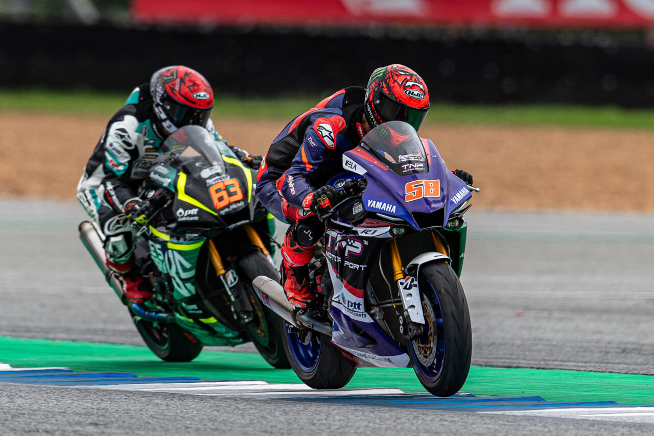 เกมในรุ่นใหญ่อย่าง ซูเปอร์ไบค์ 1,000 ซีซี (SB1 Pro) ซึ่งเป็นไฮไลต์ของสุดสัปดาห์นี้ ยังคงเข้มข้นสุดๆ โดยตำแหน่งโพลสนามนี้เป็นของ “แสตมป์” อภิวัฒน์ วงศ์ธนานนท์ จอมเก๋าจาก อีสต์ เอ็นเจที เรซซิ่ง ทีม ขนาบข้างด้วย “ซุป” อนุชา นาคเจริญศรี จาก โปร ฮอนด้า บริดจสโตน อันเดรียนี เบนดิกซ์ เอเอ็น เรซซิ่ง ทีม และ “บอล” จักรกฤษณ์ แสวงสวาท จาก ไบค์สตอรี พีทีที ลูบริแคนท์ส ยามาฮ่า เรซซิ่ง ทีม ในแถวหน้า ขณะที่ “มิกซ์” ธนัช ละอองปลิว นักบิดดาวรุ่งจาก อิเดมิตสึ ฮอนด้า ทีม คริสมาส ออกตัวจากแถว 2