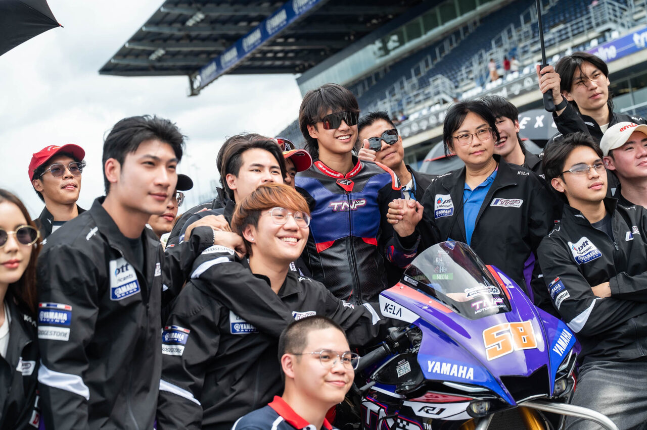 ขณะที่ นักแสดงหนุ่ม โอม-ภวัต จิตต์สว่างดี จาก ยามาฮ่า ทีเอ็นพี พีทีที ลูบริแคนท์ส ได้อันดับ 7 รุ่น ซูเปอร์สต็อก 1,000 ซีซี (ST3)