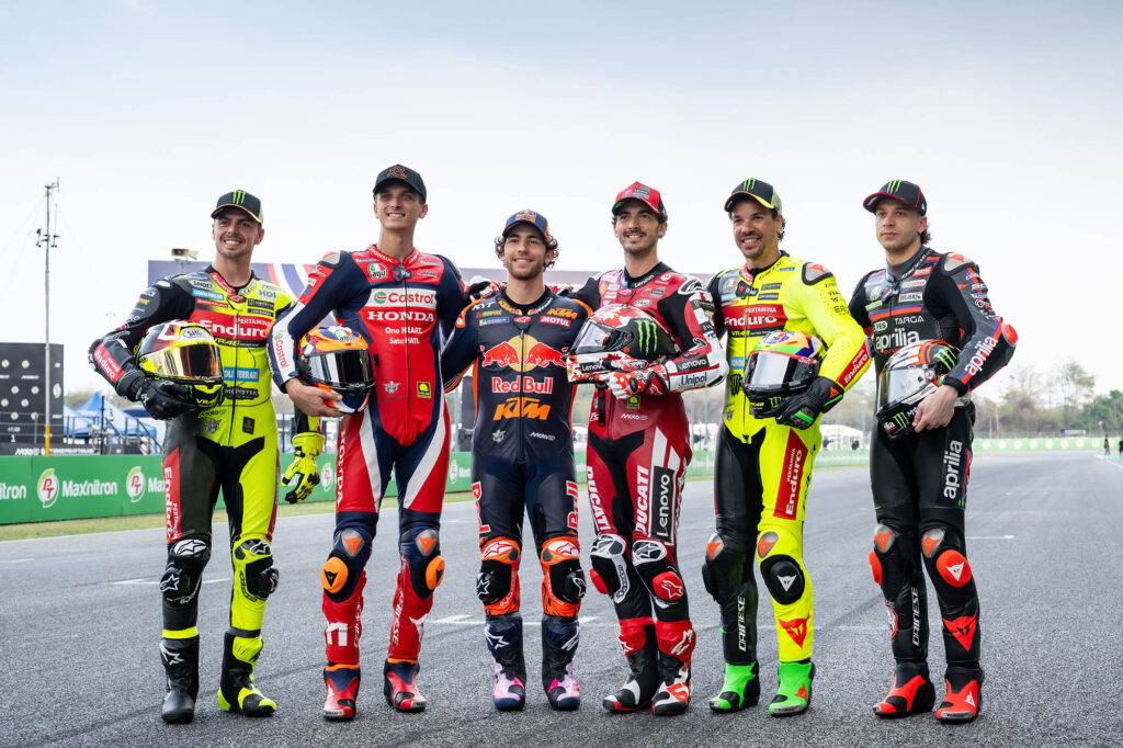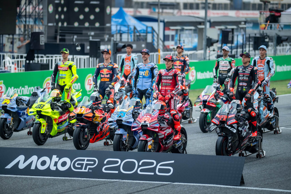 มาร์ค มาร์เกซ ยอดนักบิดสแปนิชแชมป์โลก 7 สมัย ควงคู่ อเล็กซ์ มาร์เกซ รองแชมป์โลก และ มาร์โก เบซเซ็คคี หนึ่งในตัวเต็งแถลงข่าวอย่างเป็นทางการ เปิดฉากศึกมอเตอร์สปอร์ตสองล้อเบอร์หนึ่งของโลกอย่าง “โมโตจีพี 2026” ที่เข้าสู่โปรแกรม “พรีเรซ” ที่ สนามช้าง อินเตอร์เนชั่นแนล เซอร์กิต จ.บุรีรัมย์ พร้อมการถ่ายภาพประวัติศาสตร์บันทึกทำเนียบนักบิดทุกรุ่น ก่อนดวลเดือดในรายการ “พีที กรังด์ปรีซ์ ออฟ ไทยแลนด์” สุดสัปดาห์นี้